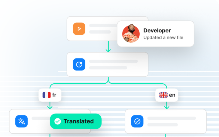 a no-code automation layer that connects with developer tools, CMS, and CRM systems to trigger, approve, and audit localization updates alongside deployments.