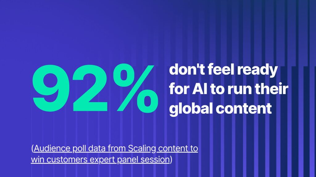 When asked how prepared their operations were for AI to take over global content tomorrow, only 8 percent said they felt genuinely ready (audience poll data from Scaling content to win customers expert panel session). The gap between investment and readiness was broadly recognized. What was less clear, for most of them, was what closing it would actually require.