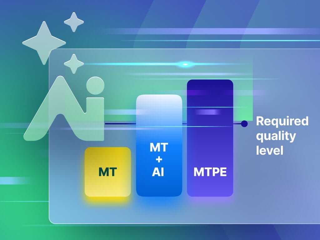 Unsere KI-Übersetzungslösungen bieten hochwertige Übersetzungen, die die Lücke zwischen MT und MTPE überbrücken und es dir ermöglichen, den Anteil der Übersetzungs-Workflows ohne menschliches Eingreifen zu erhöhen.
