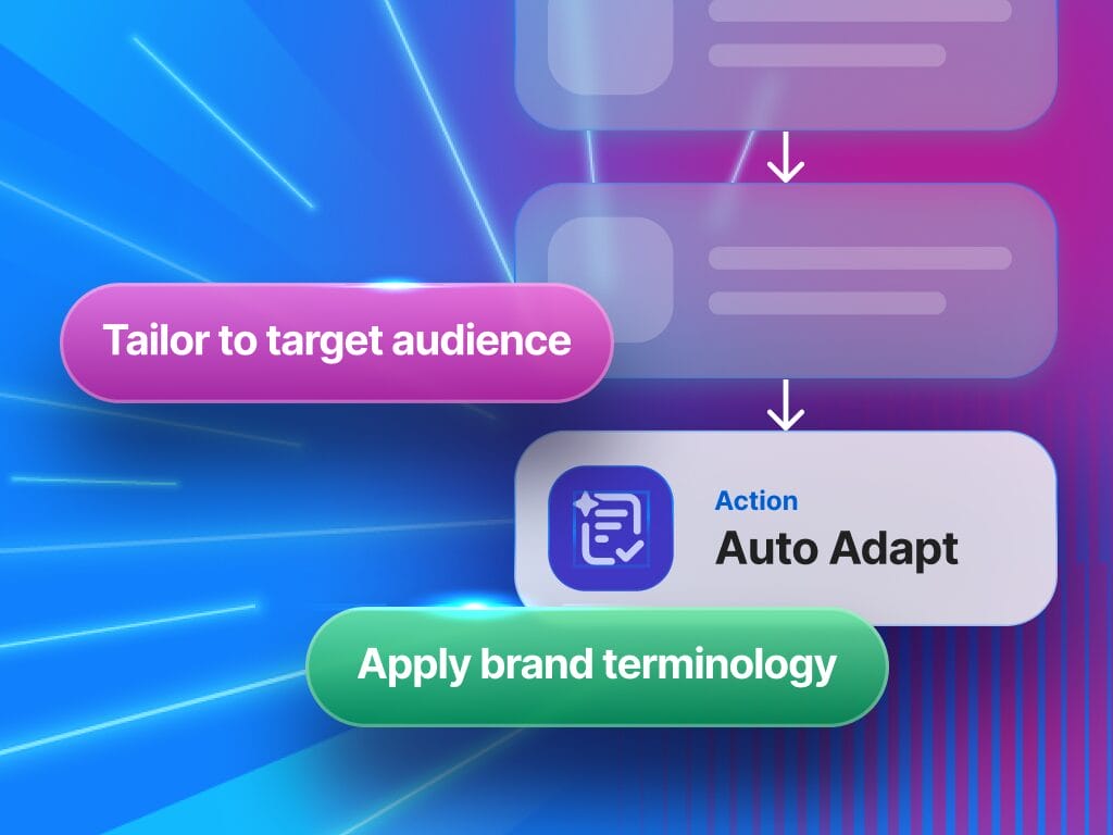 Geh über die Übersetzung hinaus und passe deinen Text automatisiert an spezifische Zielgruppen an, ohne dass du manuelle Anstrengungen aufbringen musst. Verwende benutzerdefinierte Prompts in der Auto Adapt-Funktion von Phrase, um Texte in großem Maßstab zu personalisieren.