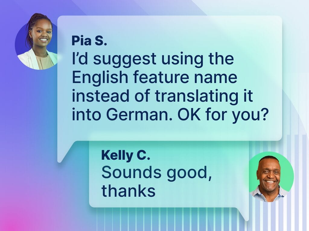 Phrase reduces communication friction. Translators and reviewers get real-time notifications, in-editor commenting, and full context, so they stay aligned without switching tools.